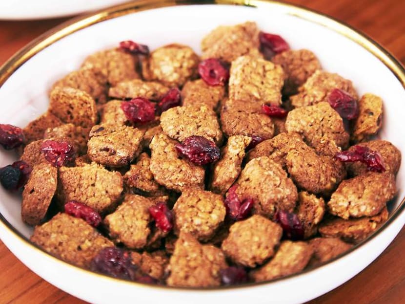 This was what launched Pelyn’s home-based business and she chose this popular snack as it is one of her favourite things to eat. “I love cornflake cookies and would regularly order them. But after a few disappointing orders, I decided to make my own,” says Pelyn. “Mine aren’t too buttery or sticky – I like them light and crisp.” Unlike many renditions which are more crunchy than crisp, hers certainly have a more delicate texture. And though the honey coating of the cornflake clusters is generous, the overall flavour isn’t overly cloying either. These cornflake clusters can be kept in the airtight tub for up to a month, but we suspect the cookies will be finished way before that.
