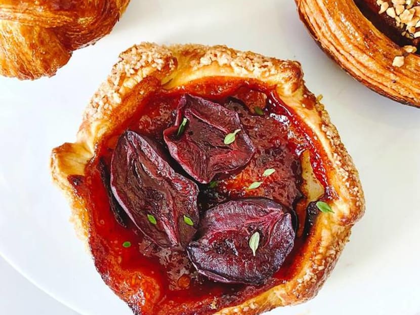 Lacto-fermentation is really the fancy term for pickling. In this case, the plums are fermented with salt for two days, which leads them to produce lactic acid. Taste-wise, they translate to soured plums with a hint of saltiness and a velvety mouthfeel. These sit on a rich pastry that’s made from a ratio of 75 percent butter to flour (hello, Covid kilos) that is akin to a denser puff pastry. A sprinkling of sugar gives the pastry the touch of sweetness it needs.