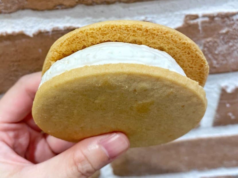 According to Ishiya’s promotional image, the ice cream sandwich comprises two butter cookies hugging a slab of white chocolate-flavoured ice cream studded with white choc chips.