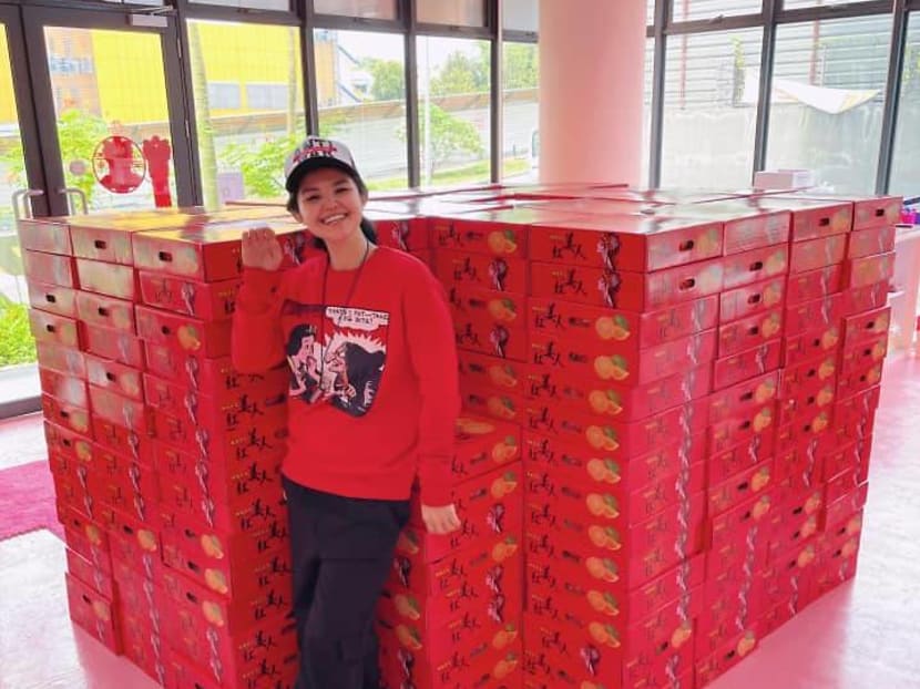 The concept is not exactly random, as Freda is a third-generation fruit seller; her grandfather, mother and aunts were all in the trade before they stopped running their stores in Siglap. “I met Fred when she was a manager for one of my shows. During the Circuit Breaker period there were no shows, but I felt I needed to do something ’cos I was so bored at home,” recounts Olinda.