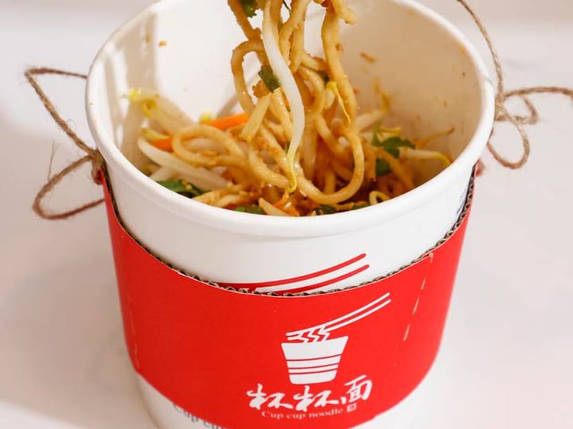 Beautea’s takeaway outlet, located at a busy stretch near McDonald’s at Toa Payoh Hub, is split into two kiosks. While one offers the bubble tea that Zhen Yang’s famous for, the other kiosk has a new concept called Cup Cup Noodle. It sells, yep, noodles in a cup — liang mian (Chinese cold noodle salad) and suan la fen (spicy and sour sweet potato noodles), the trendy Sichuan snack that you can order to go with your bubble tea. Zhen Yang himself hails from Chongqing, Sichuan, and moved to Singapore with his parents when he was nine. The recipes for the noodles came from his aunt and mum, whom he says “used to run a hotpot restaurant” in their hometown.