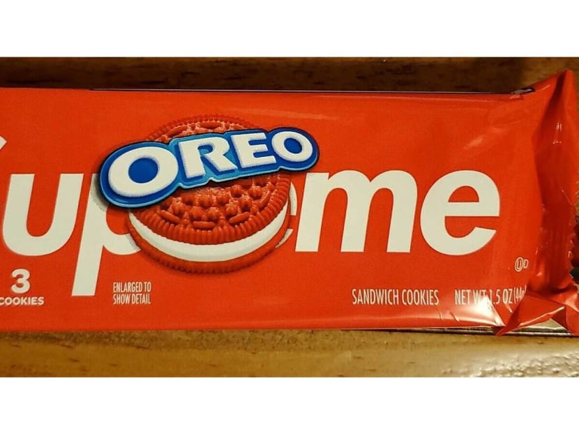 According to Supreme’s official website, the cookies are “double stuff Oreo cookies with baked logo”, and come in single packs of three. The red cookie with white cream kinda looks like Oreo’s limited-edition Red Velvet flavour to us.