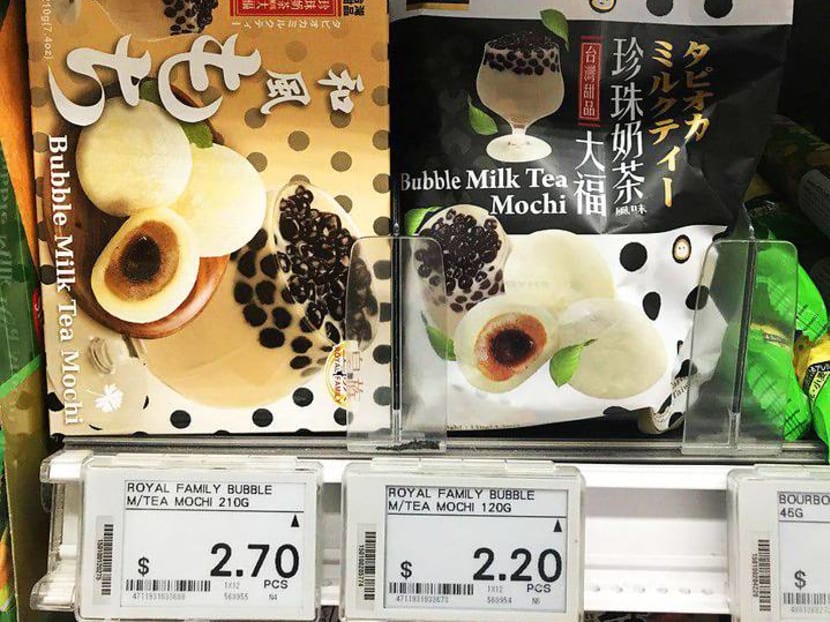 Anything can be made in a brown sugar bubble tea flavour these days — including ice cream and KFC's egg tarts. Now there's even BBT mochi. 8days.sg recently discovered that Sheng Siong has started stocking two types of bubble milk tea mochi at their supermarket outlets. These lacto vegetarian-friendly mochis, sold in box and packet packaging, are imported from Taiwan and made by the same Taiwanese F&B company called Royal Family, a traditional brand well-known for making boxed souvenir mochi.