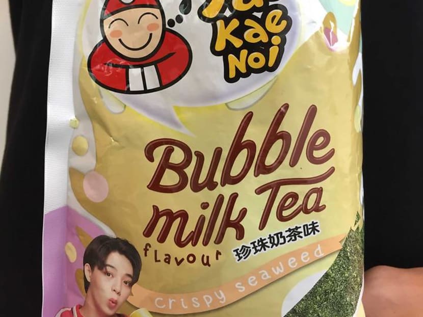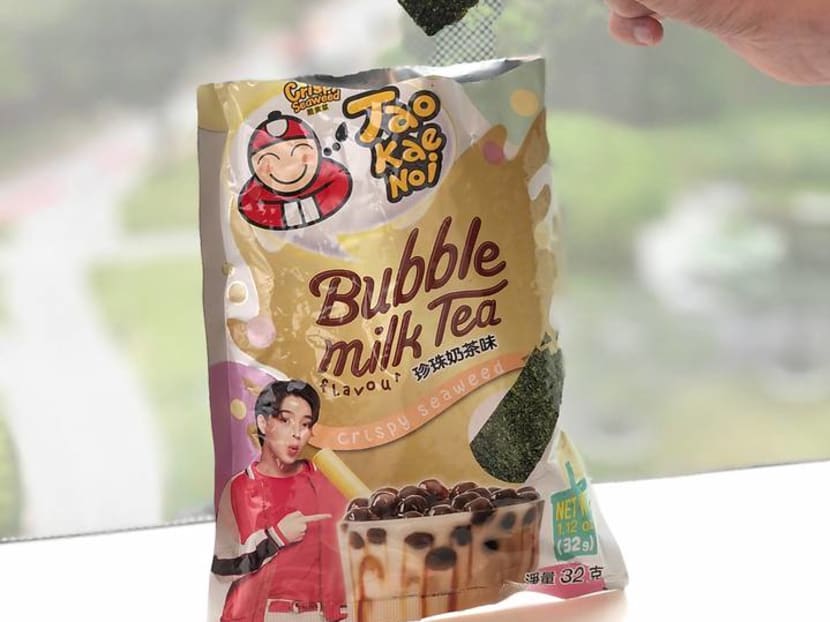 Bubble tea-spiked cakes, ice cream bars, hotpot. And now, seaweed too? Thai snack brand, Tao Kae Noi seems to think it's a good idea. It chose Singapore as the first country to launch its all-new Crispy Seaweed Bubble Milk Tea. This, along with a Salted Egg Basil Tempura Seaweed.