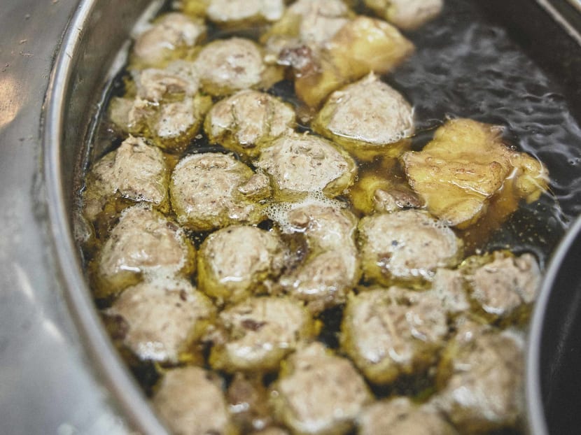 We enjoy the underdog version of the noodles immensely. The broth, now imbued with chunks of pineapple, lemongrass and chilli oil, is a sweet-spicy, but well-balanced, affair that’s endlessly drinkable, thanks to a hit of sourness from lime. Emina swaps out the accompaniments with another rustic meatball, chicken this time, as well as a springy, fishcake-like chicken meatloaf. The noodles, by default, are thick rice vermicelli noodles, but the hawker says you can opt to swap them if you’d like.