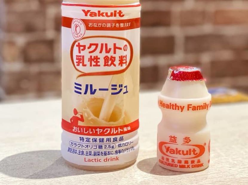 But once we compare the ingredients in both drinks, it’s clear that the giant Yakult is not simply an upsized version of the original. The 100ml OG bottle has a shorter list of ingredients, starting with sucrose (aka table sugar), dried skimmed milk, glucose, fructose, flavouring and the L. casei bacteria strain.