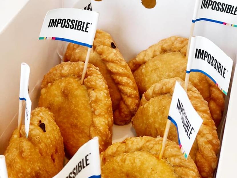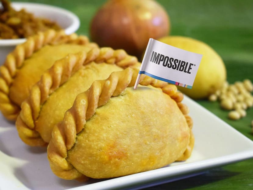 Impossible Foods launched in Singapore last March and in that time has become an ubiquitous presence on menus island-wide thanks to their collaborations with restaurants and local brands including Fatboy’s the Burger Bar, Omakase Burger, Oriole Coffee + Bar, PS Cafe, Three Buns, Wolf Burger, Potato Head, Bread Street Kitchen by Gordon Ramsey and Cut by Wolfgang Puck. We like that they’ve also gone beyond the obvious burger route and have remixed dishes like satay (Violet Oon Satay Bar & Grill) and fried rice (PappaRich). And now they’ve teamed up with local purveyor of curry puffs, Tip Top, the (arguably more delicious) underdog to Old Chang Kee. Tip Top opened its first store in Ang Mo Kio in 1979 and has now expanded to nine outlets across Singapore. Fans of Tip Top love their filled-to-bursting curry puffs that are made with a “special blend of 18 spices”.