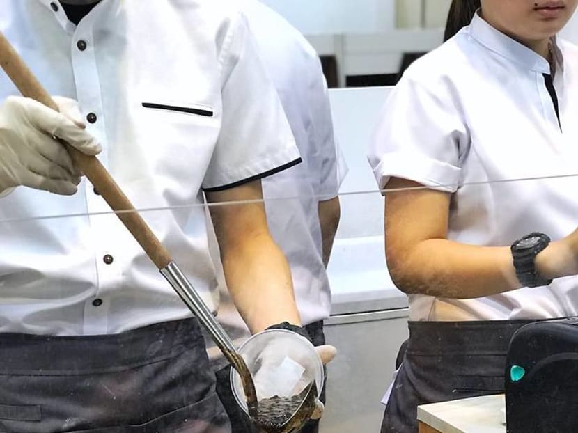 We’re advised by the staff to stir our drink “18 times” to mix the brown sugar syrup, cream and milk thoroughly before drinking. While all of the ingredients used at the pop-up are imported from Xing Fu Tang’s principal chain in Taiwan, the fresh milk used here is Meiji’s 4.3 Deluxe Milk, which you can buy from supermarkets here and is said to be creamier than the average fresh milk brand. It’s also the same milk that Tiger Sugar uses for its drinks.