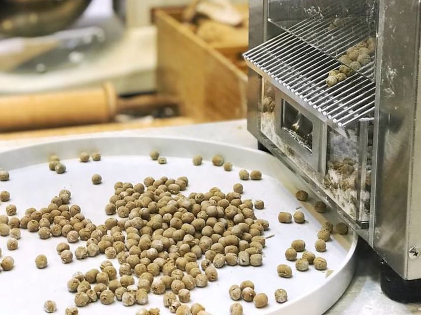 Despite the cramped stall space, the pearls that go into the drinks are made from scratch on-site. We spy a kitchen mixer industriously churning tapioca dough that’s later hand-kneaded and cut into slabs by Xing Fu Tang staff, and fed into a cute little machine that spits out pea-sized pearls. If you’re looking for fellow Taiwanese bubble tea chain Tiger Sugar’s bulbous, gooey pearls, you won’t find it here; Xing Fu Tang’s pearls are more like small, al dente pellets.