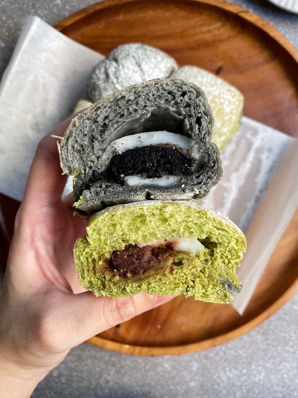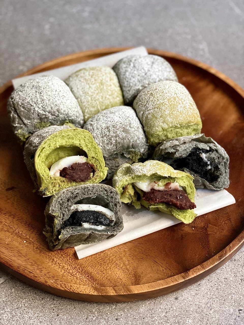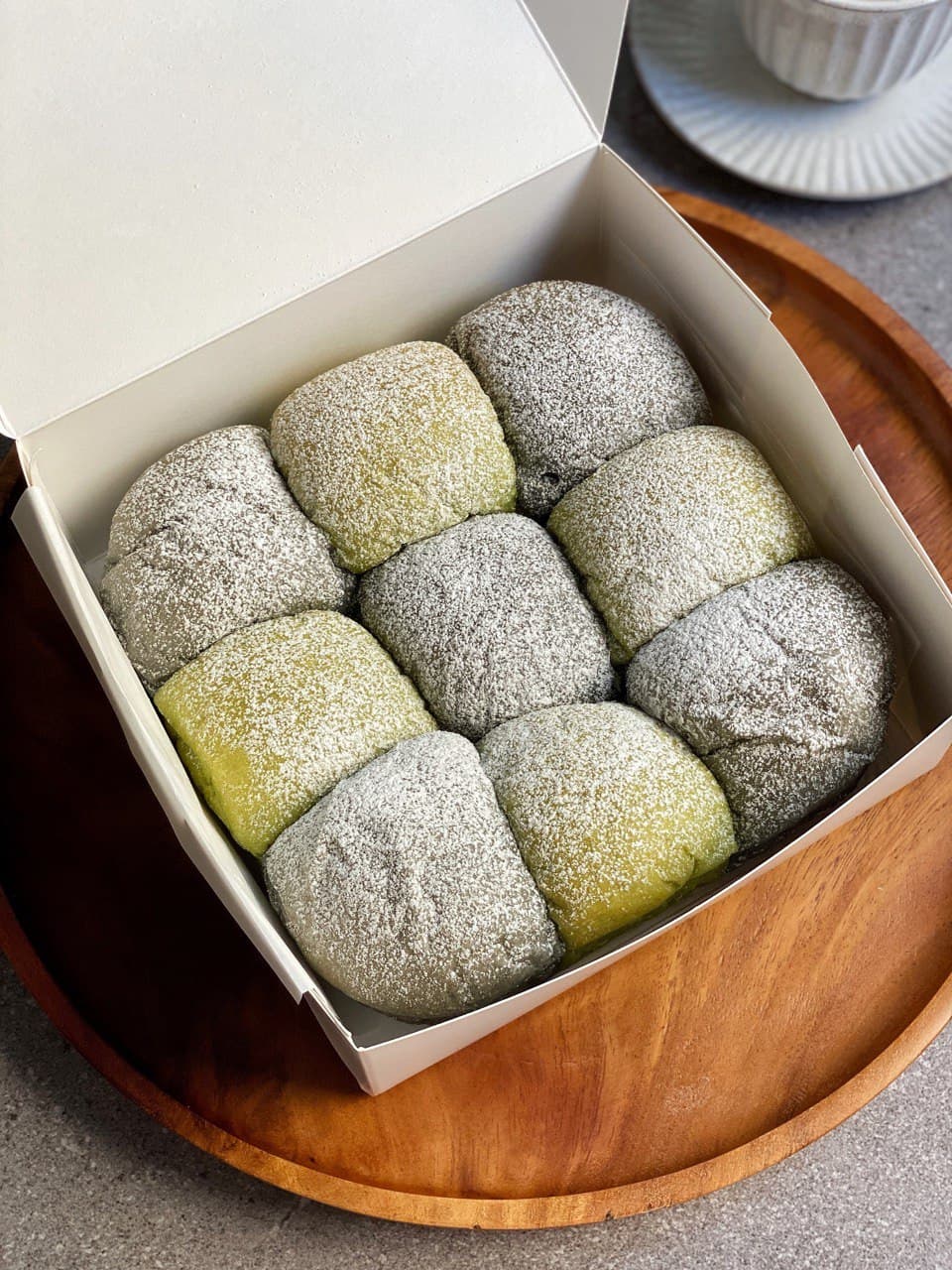At first glance, the green-and-black milk buns look very appealing. They’re simply dusted with confectioners’ sugar and packed in a plain white box, and you’ll have to pull the buns apart to consume 'em.