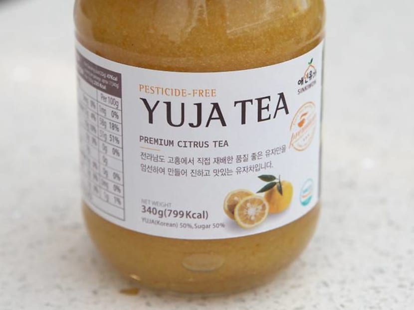 Apparently, pesticide-free yuja (citrus fruit that's the Korean version of Japanese yuzu) from Goheung has a flavour that surpasses those cultivated in other regions . The vitamin C-rich Sinkiwon’s Yuja Cheong (yuja citron preserve) brims with the bracing soul of the fruit that's part lemon, part orange, a tiny bit of grapefruit and a whole lotta intoxicating floral notes. It's called a tea because you can mix it with hot water to make a beverage, but really, you can use it in most desserts (see grape tart recipe) or even slather it on scones.