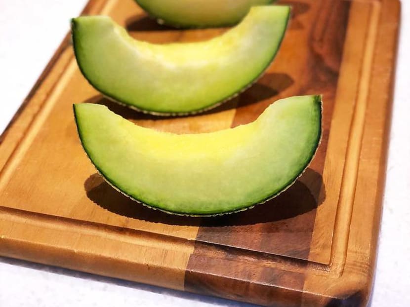 Ethereally sweet, almost honeyed, dripping with juice and its skin a pristine network of natural markings — say hello to the atas musk melon. No, it's not from Japan though it tastes almost like those premium orbs — it's from Korea. We also had a bunch of anatomically perfect Korean muscat grapes: giant, bright green globes that taste like flowers, wine, and all things lovely.