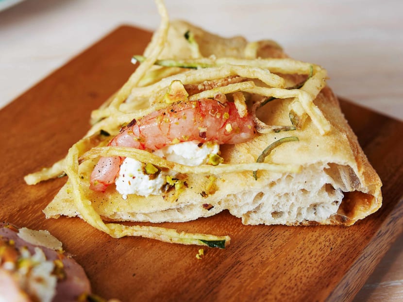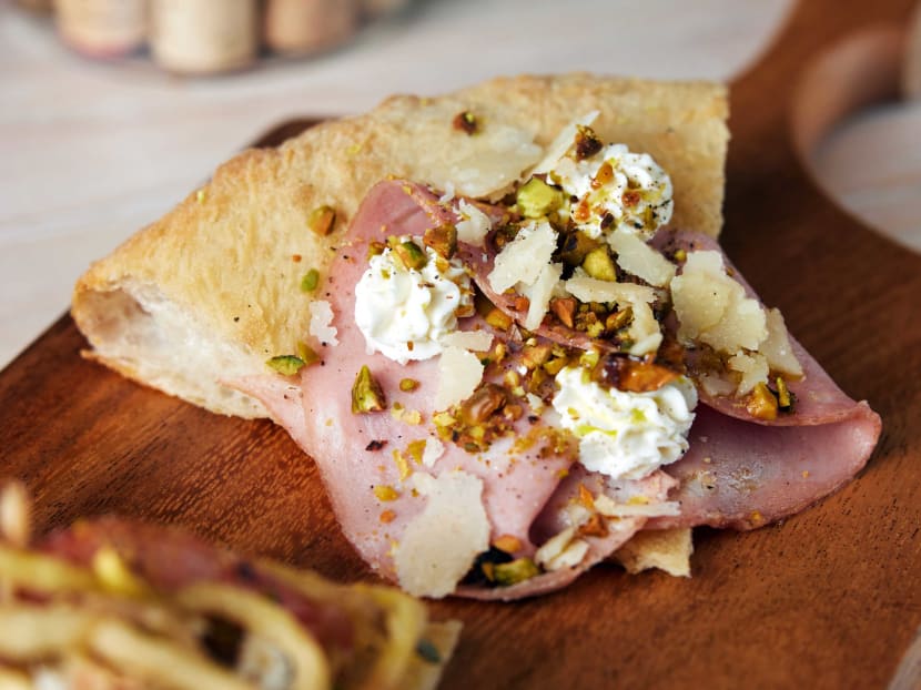 All guests have to order the six-course tasting menu if you dine indoors. The $138 menu includes a cichetti (savoury snack), an appetiser, two slices of his signature Newpolitan pizza, a slice of Newpolitan a 2 Temperature, a small pasta and dessert. But you can top up the somewhat modest portions with whole pizzas and the chef’s selection of cold cuts and cheeses from the a la carte menu. Here are some highlights from the tasting set.