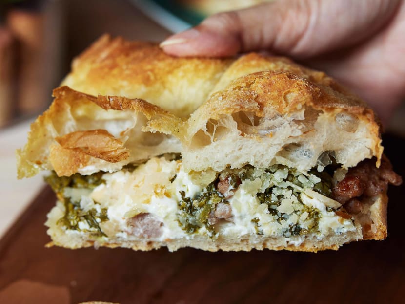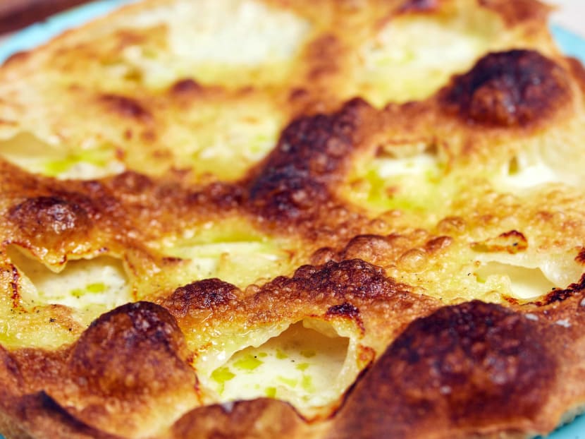 “People may not see the Focaccia di Recco as a pizza, but I do. You could say any flatbread is a pizza, or any flatbread is a focaccia. The difference in my view is regional,” shares Antonio. Originated in Recco, a town near Genoa, this savoury pastry is made with only dough, stracchino (think of it as a saltier and funkier mozzarella), olive oil and salt.