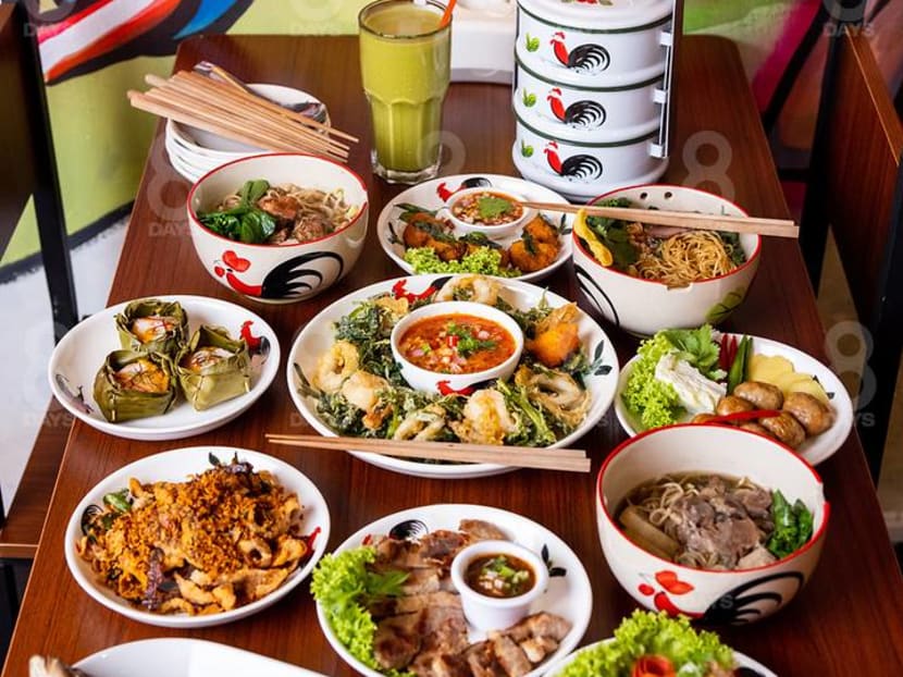 With its yellow and pink neon sign, Soi Candy, which seats 46 pax (26 indoors and 20 outdoors) sticks out among its monochromatic neighbours. The interior, where upbeat Thai tunes blast in the background, packs an equal punch. One side of the colourful space is brightened by bold splashes of graffiti depicting a Thai street and cheeky phrases like “No drunk no go home”, while the other is a blue wall lined with retro enamel floral trays and other old-school memorabilia. The somewhat schizo décor is Irene’s idea, who wanted the space to be “Instagram-worthy and fun”, while also traditional. “Young people like to sit on the side with the graffiti and use it as a backdrop to take photos of their food, while families prefer the other side, so we put the bigger tables there,” says the towkay.