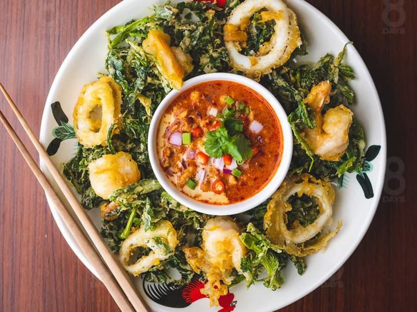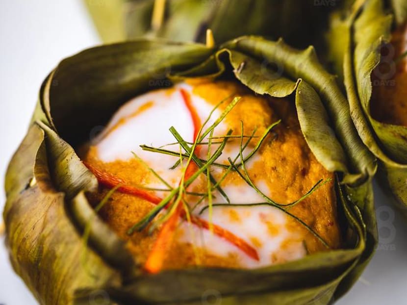 The humble Hor Mok, or Thai otah, gets a classy upgrade here with generous chunks of salmon. Made with fish paste, Thai herbs, homemade chilli paste, and steamed on a bed of cabbage in banana leaves, the Hor Mok is moist and its flavours beautifully balanced.