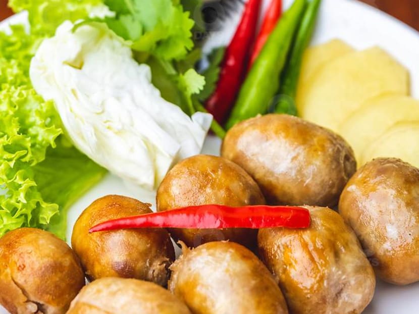 They might not look like much, but these sausages, an eastern Thai specialty, are made from scratch by hand. Minced pork is marinated overnight with Candy’s secret mix of herbs and spices before they are stuffed into casings, steamed and then deep-fried. The sausages are a bit on the salty side as they are meant to be eaten with the veggie wraps like a hand roll. Tasty, but a tad too gamey for our liking.