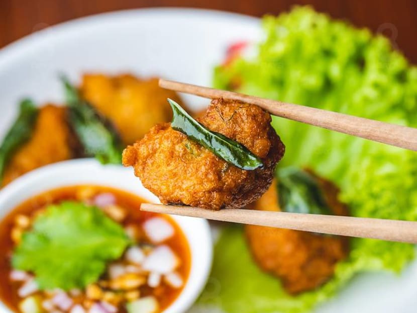 A clever twist to the usual fish cake. Made with squid paste and chunks, these bouncy nuggets are bursting with briny flavours of the tender squid and crunchiness of the long beans.