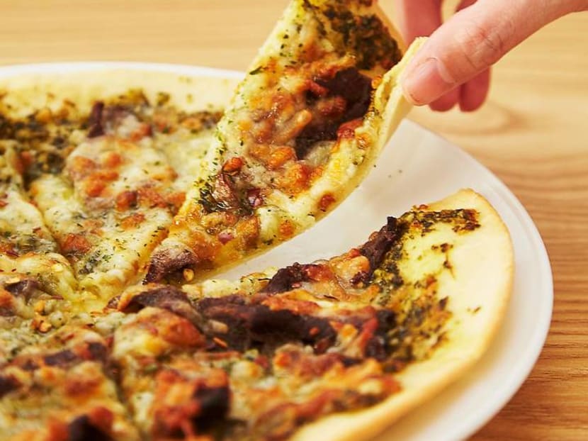 Does bulgogi (marinated barbecued beef) go with pesto and cheese on a pizza base? “Spontaneous” cook Hanna thinks so. Surprisingly, our made-from-scratch pie is very tasty. It’s almost a Korean-fied pizza margherita, with a pleasing combination of earthy basil pesto, gooey melted mozzarella cheese and juicy, umami soy-spiked beef on a thin crispy crust balanced with some mild heat from chilli flakes.