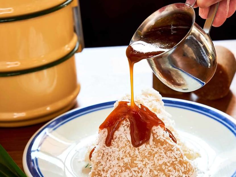 Also new to the kueh menu is this glutinous rice dessert coated with grated coconut and drizzled with gula melaka syrup to serve. It’s usually one of our favourite kuehs, but we find this one a tad too chewy for our liking. The caramelly gula melaka syrup is fab, though (making a good syrup is harder than it looks). And good news: you can get it with coffee here.