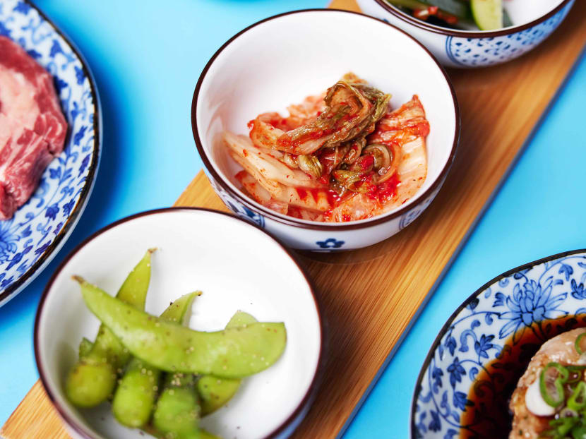“My wife prefers seafood, so we try to provide more variety compared to the usual mookata and yakiniku places, which focus more on meat,” says Glen. The Set Menu ($23.80 for two) features ten items, including staples like pork belly and collar, chicken wing and thigh, prawn, flounder, as well as veggies, sides and two cups of wakame daikon soup. All plates are mini-sized, like those served in a classic izakaya.