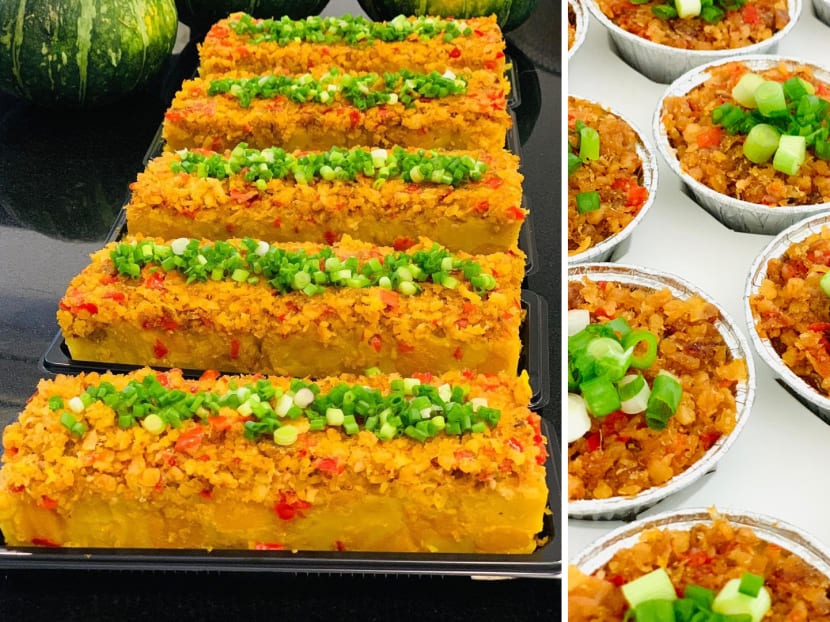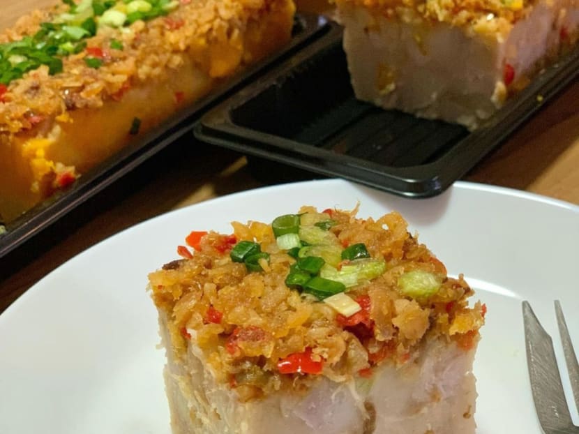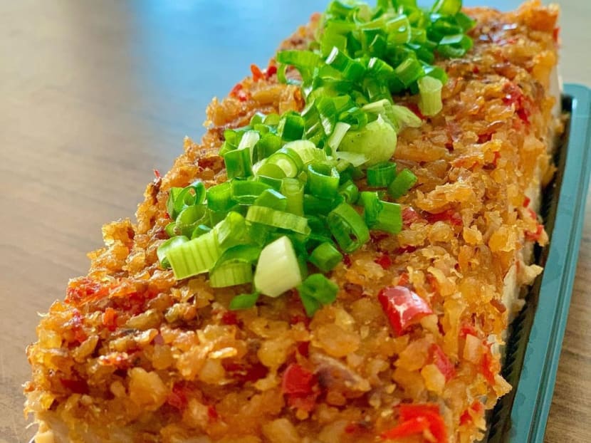 The yam cakes are made by Jenny Wee, who is originally from Kuching, Sarawak, using a traditional family recipe passed down through three generations. She learned how to make them during the Circuit Breaker ’cos her husband missed the orh kueh that her mum, who lives in Kuching, makes.