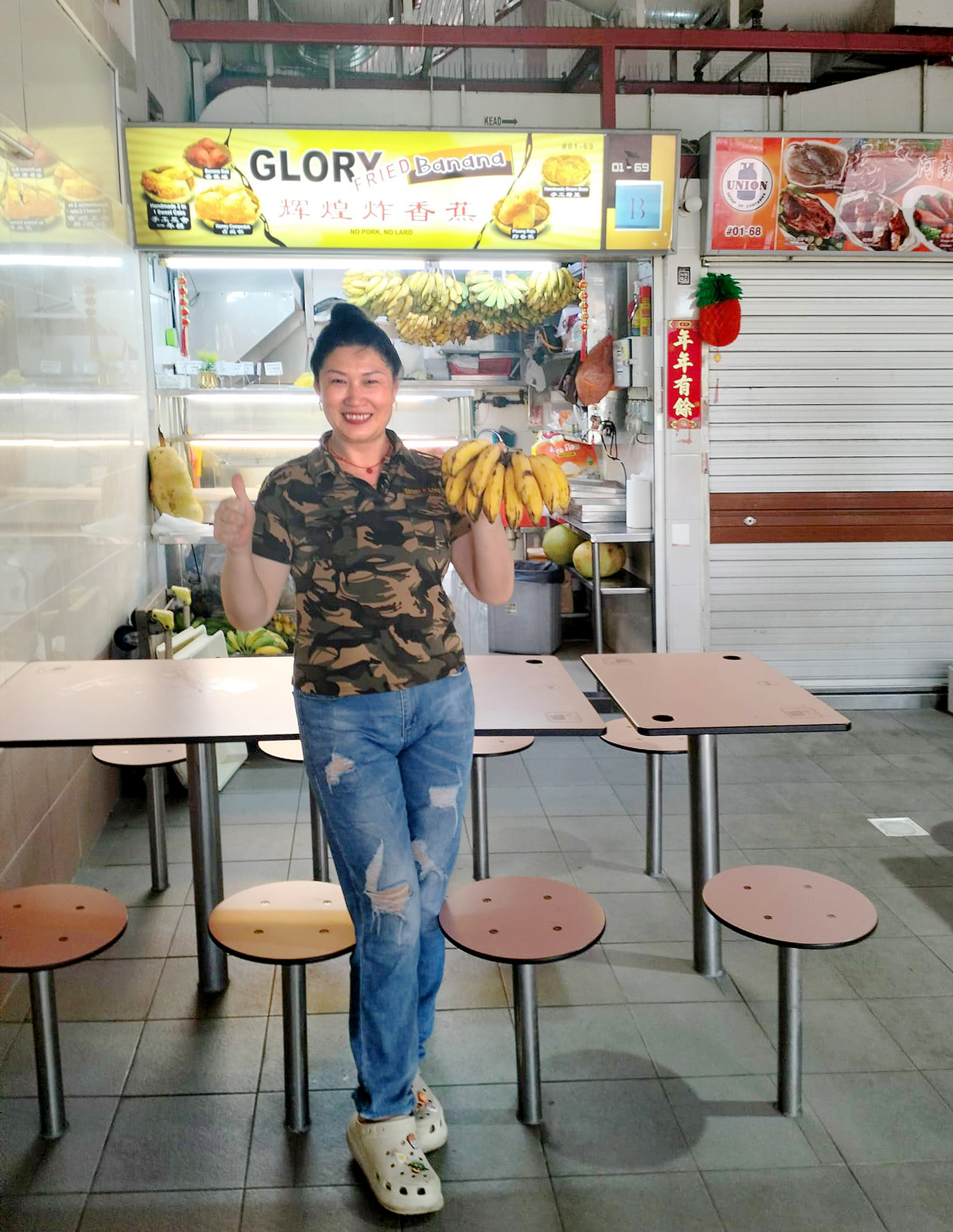 “My customers told me that the Million Star Fried Banana boss sometimes comes over to peek at my stall,” says the hawker behind new shop Glory Fried Banana. She set up her biz two rows behind Million Star at Changi Village Hawker Centre, where she previously worked for 4 months.