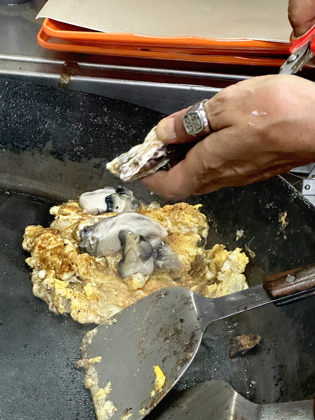 “I might take the oysters out if there’s a queue, but I will only shuck them when frying the omelette. This is why customers might need to wait around 10 minutes for their orders. Customers’ health is more important,” shares Dominic.