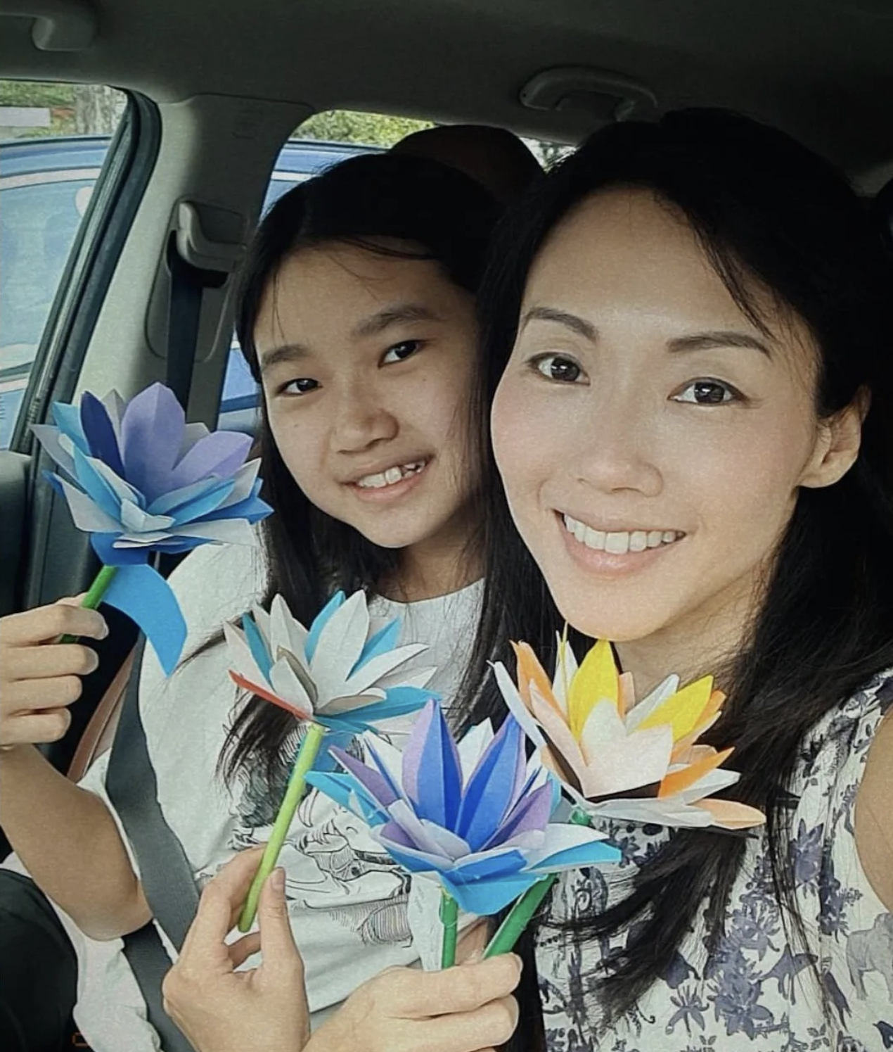Jaime Teo made paper flowers with her 13-year-old daughter Renee