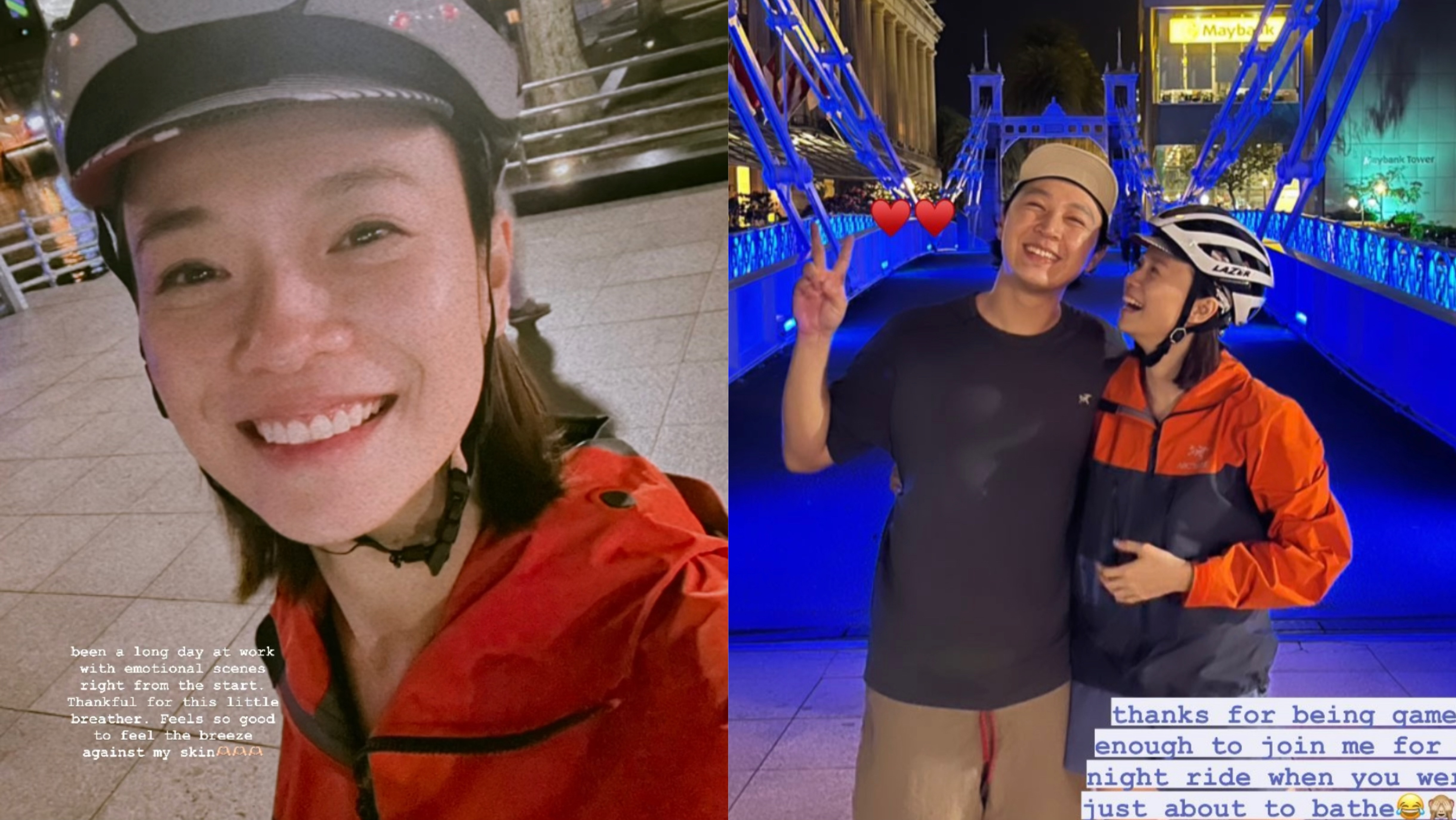 Felicia Chin and Jeffrey Xu went night cycling together