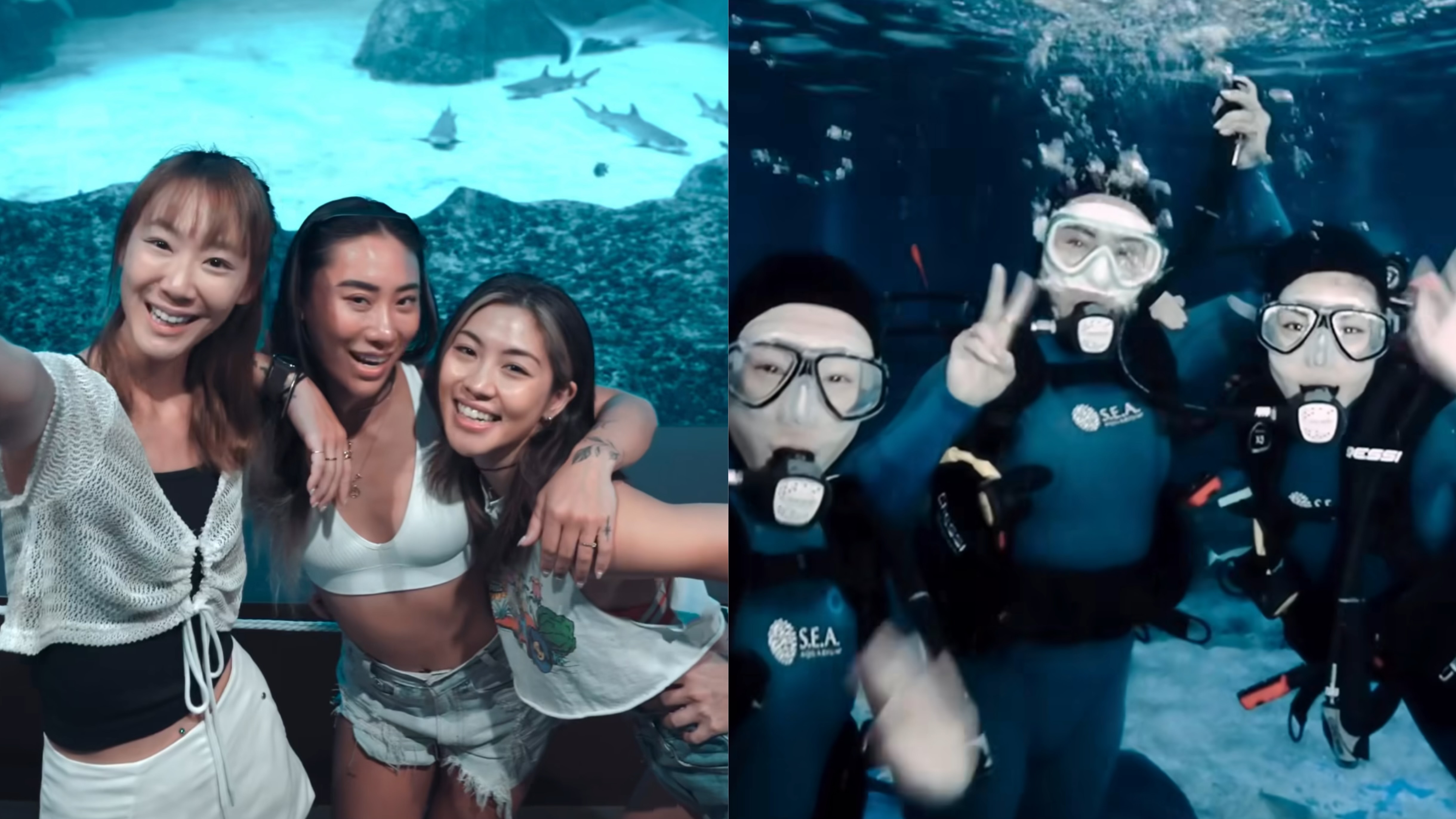 Julie Tan, Sandra Riley Tang and Narelle Kheng went swimming with sharks