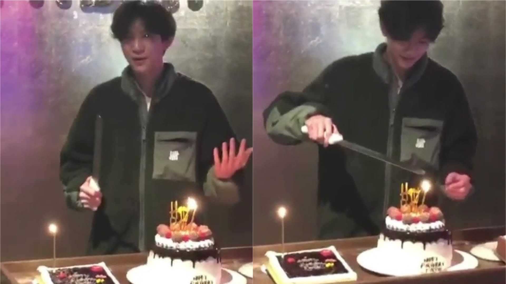 In the video, Morton can be seen posing with three cakes while his friends sing him the birthday song. He then pulls out a candle from one of the cakes before shaking it to snuff out the flame.