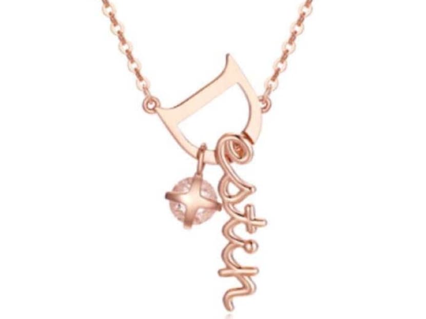 In Goblin, Eun-Tak and the Goblin magically travel to Canada, where she sees a necklace she likes at a streetside store. It says Destin , French for destiny, which is of course one of the big themes of the show. He secretly buys it and gives it to her, and she piognantly wears it in several scenes.