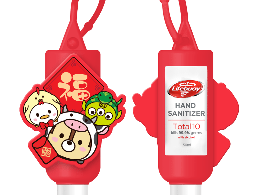 An exclusive hand sanitiser featuring the Ox with the Rooster and the Snake and the auspicious character ‘Fu’. Designs featuring the other Zodiac animals are also available. So cow-nvenient!