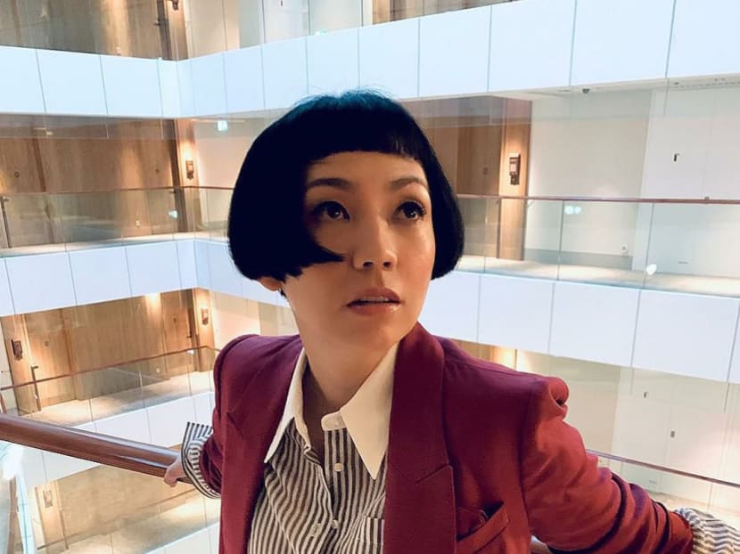 Kit embraced androgynous style on National Day, sporting a deep red suit and black and white striped shirt. Our favourite part? Her new edgy bob.