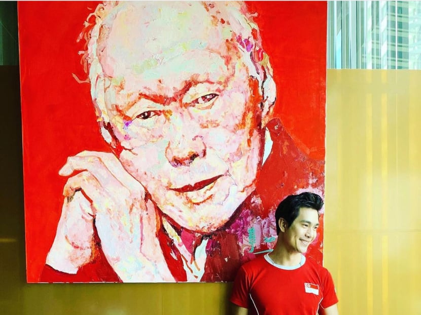 Pierre exhibited his national pride in a Team Singapore tee and white pants while posing beside a portrait of Singapore's founding Prime Minister Lee Kuan Yew. Sometimes simple is best.