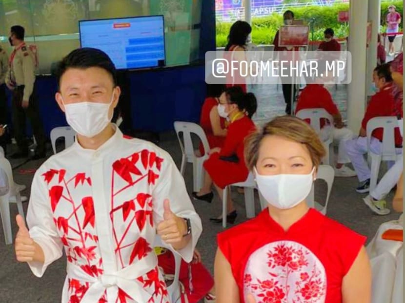 How cute is Sengkang GRC MP He Ting Ru's polka dotted cheongsam? We love the scarlet hue and flowy silhouette. Less enthused about dressing up were the other Workers’ Party MPs who opted for their NDP uniform of matching red tops and black pants.