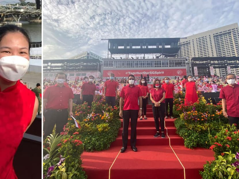 Also going local was Ang Mo Kio GRC MP Nadia, who donned a red jumpsuit from designer Sabrina Goh and kaya toast print sash from Reckless Ericka. Cute.