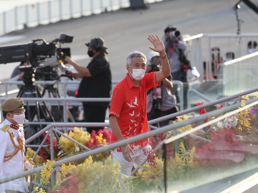 Instead of floral prints, PM Lee opted for something more whimsical this year — a red shirt with bird motifs.