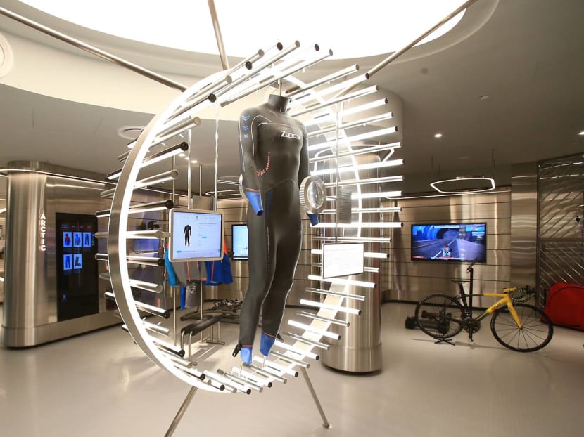 It's a new-to-market ultra-performance sports brand called Durasport, and features immersive sports experiences and products for semi-pro and pro athletes, such as a ski simulator and the world's lightest folding bike. The bright white lights and hi-tech equipment makes the shop look like it belongs on a movie set — you know, like the R&D lab of the gadget geek who creates all the badass weapons and suits for the hero.