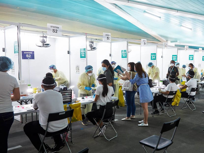 Pre-boarding testing at Marina Bay Cruise Centre terminal for World Dream passengers.