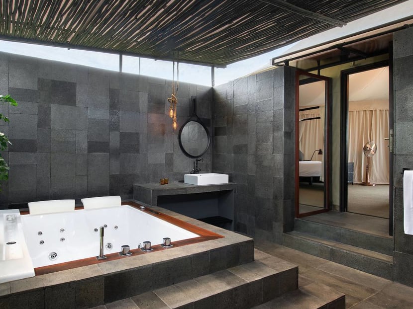 The Glamping Deluxe Tent and the Lagoon View Deluxe Tent are pimped up with a private outdoor whirlpool.