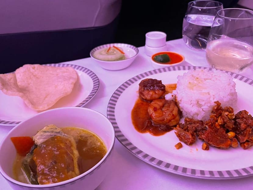 There were two options for the main Business Class meal — an international selection or a Peranakan menu designed by homegrown chef Shermay Lee. We’d pre-selected the latter.