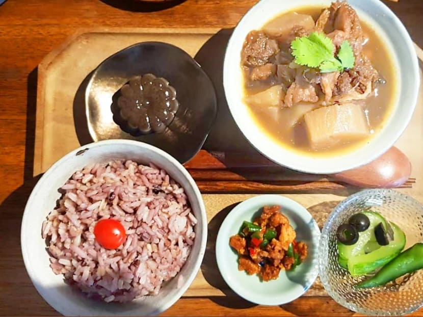 “The place is very chill and quiet and there, they show you how to brew your own tea. I usually only go there on weekends ‘cos I want to have their set meals, which are wholesome and substantial. You only have four choices, sometimes less, and they are quite standard: brown rice with a mock meat stew, pickled cucumber, and dessert like agar agar. I went during Winter Solstice Festival so I had tang yuan which was served with tasty sweet ginger soup.”