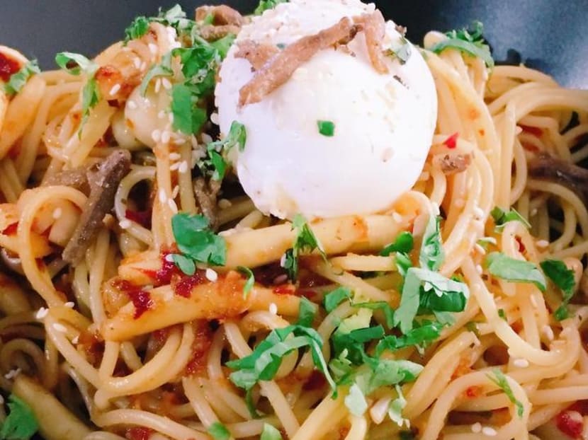 “They have your usual brunch choices and western grub but I mainly go there for the pastas, which are really unique. They have a chilli pan mee pasta — it is like a dry ban mian but instead of ban mian they serve it with pasta and onsen egg, and I also like the Ang Mo Indomie. It’s actually just pasta carbonara with Indomie seasoning but it’s very tasty and the banoffee cake is one of the best cakes I’ve had,” gushes Joel.