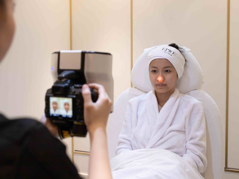 A clinic technician getting some before and after shots of a customer.