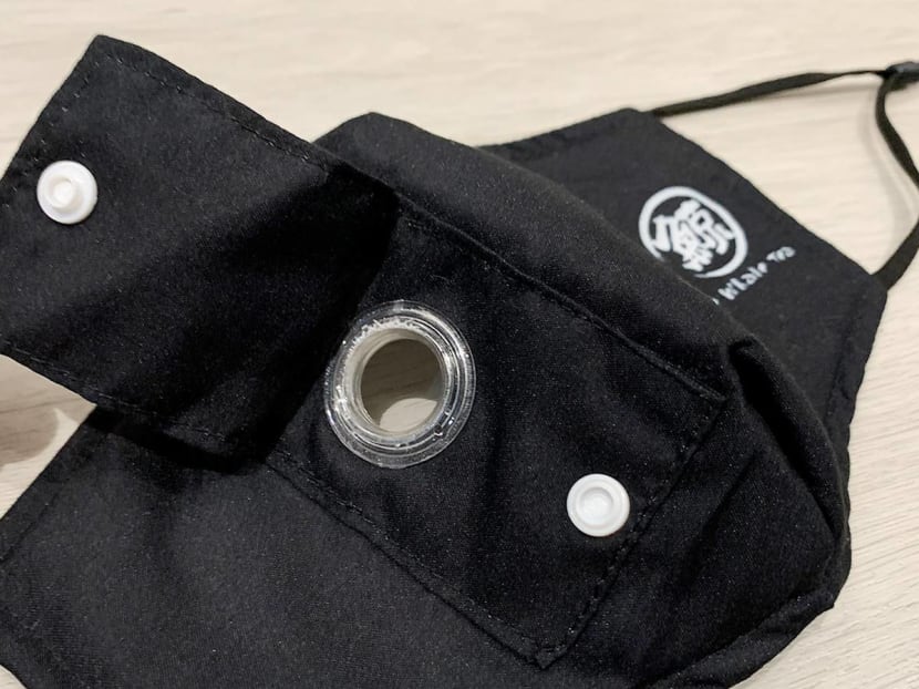 Open the flap by popping open the press button (which, if you ask us, is a little too tight), and you see it — the holey grail mask that bbt lovers have been waiting for. Ringed with a plastic protector is the opening for your bbt straw, and that space between your mouth and the mask is essential, so there's some space for the straw to go in.