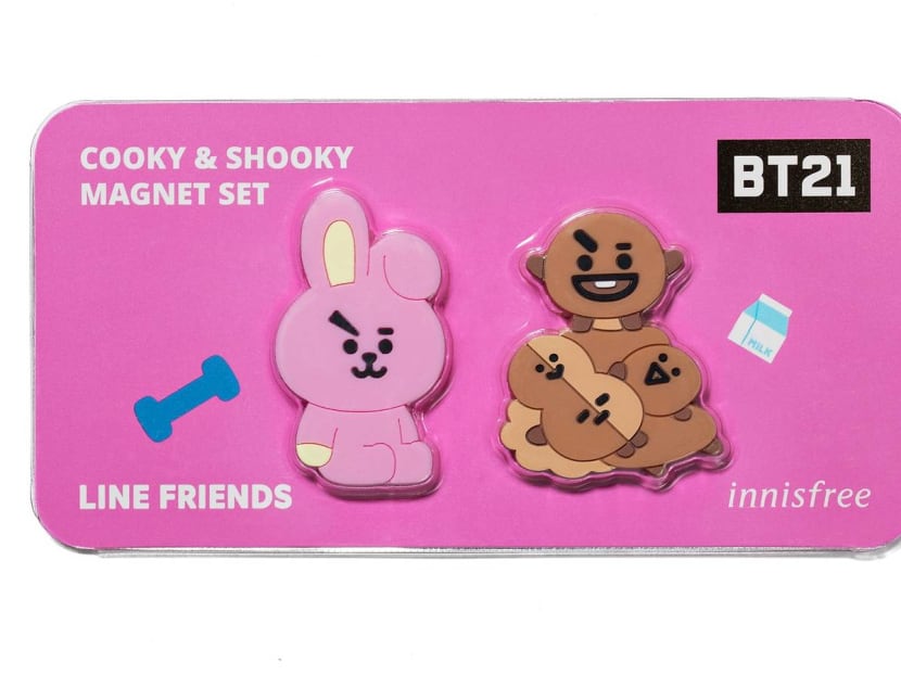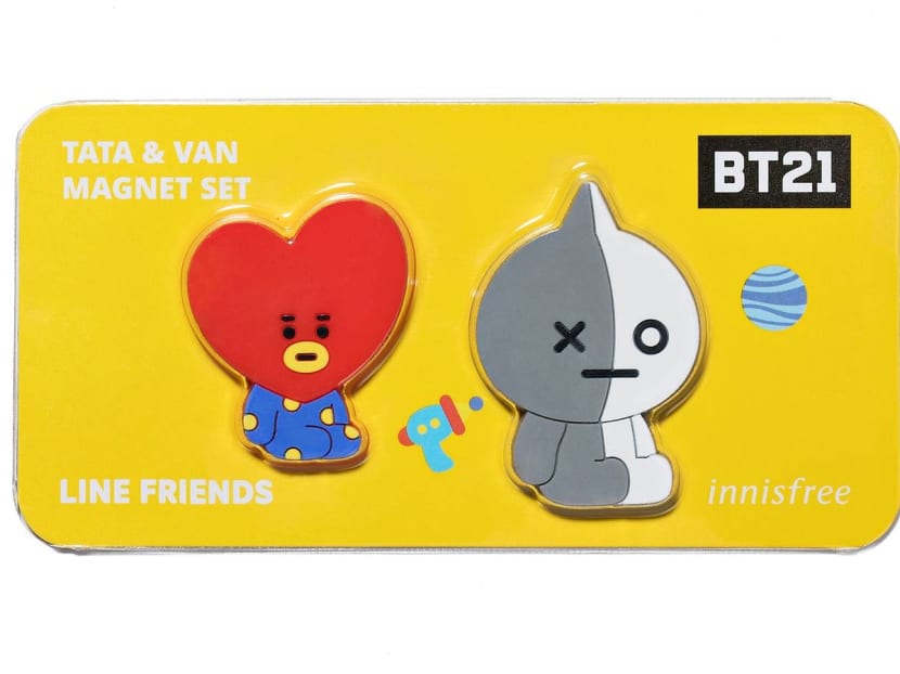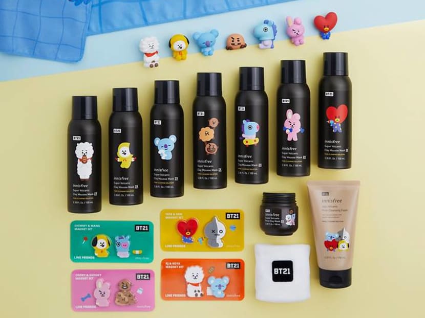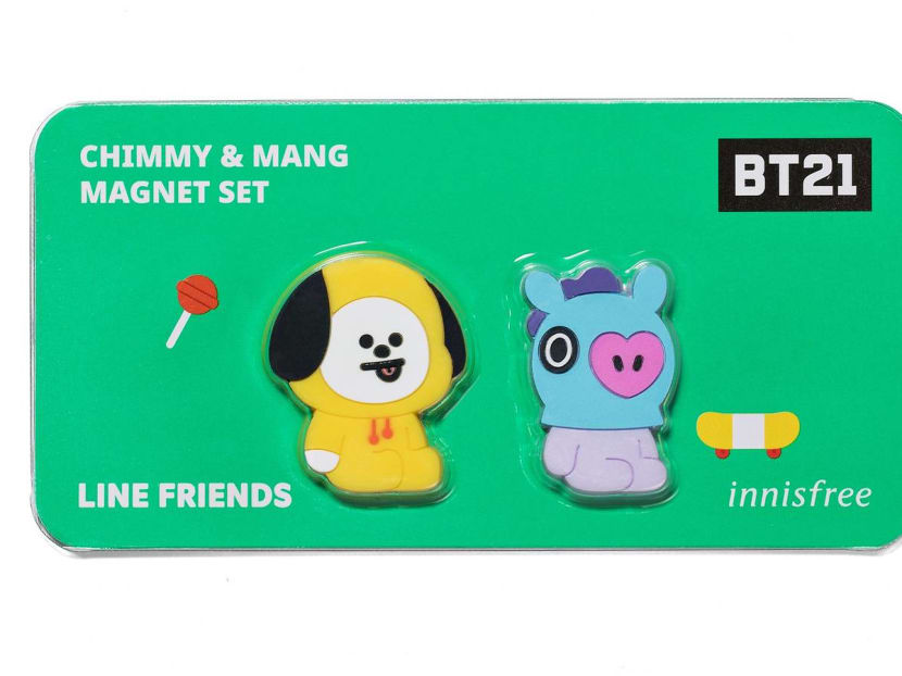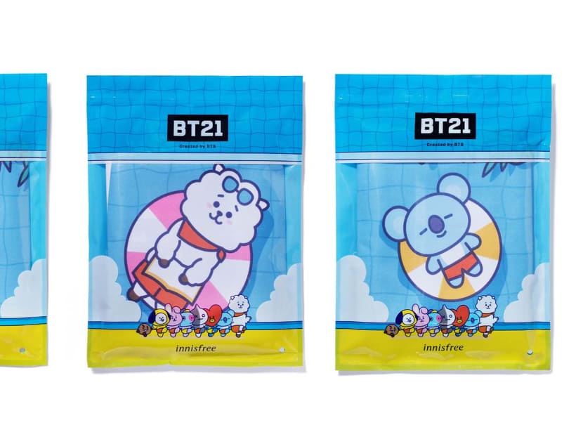Unless you've been living under a rock, you should know that BT21 are eight adorbs characters created by Line Friends based on the members of a super popular Korean boy band. The BT21 characters are Tata from Planet BT, who crashes on Earth with Van, and meets Koya, RJ, Shooky, Mang, Chimmy and Cooky.) BT21 has already collaborated with Uniqlo and has a pop-up merch store at Changi Airport T3. And now, the critters have appeared on selected Innisfree products. Yes, we know you wanna see. Here they are, in all their cutesy glory.
