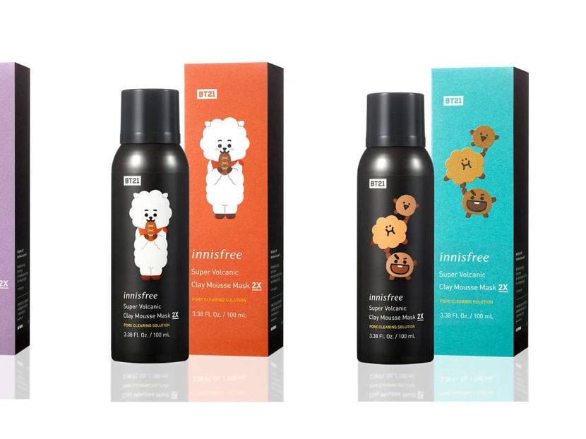 There are seven designs on the Super Volcanic Clay Mousse Mask for the seven main characters, and the popular mask does its usual — clear excess sebum and fine dust from your skin. But will the power of K-pop imbue these masks with something more? Hmm...