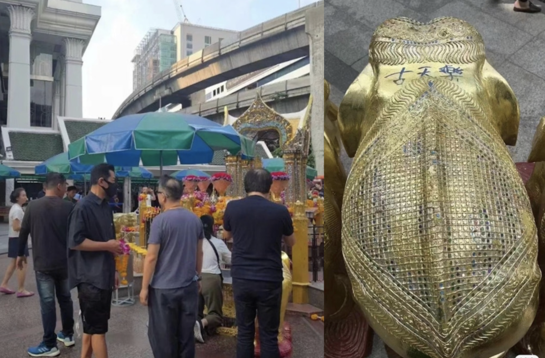 Louis Koo spends S$9,000 on 4 gold elephant statues as offerings to Four-Faced Buddha in Bangkok